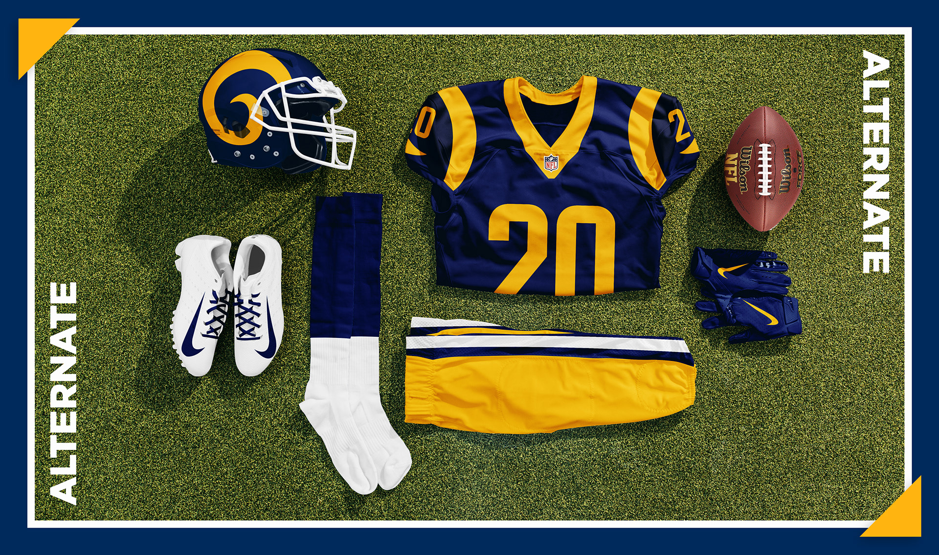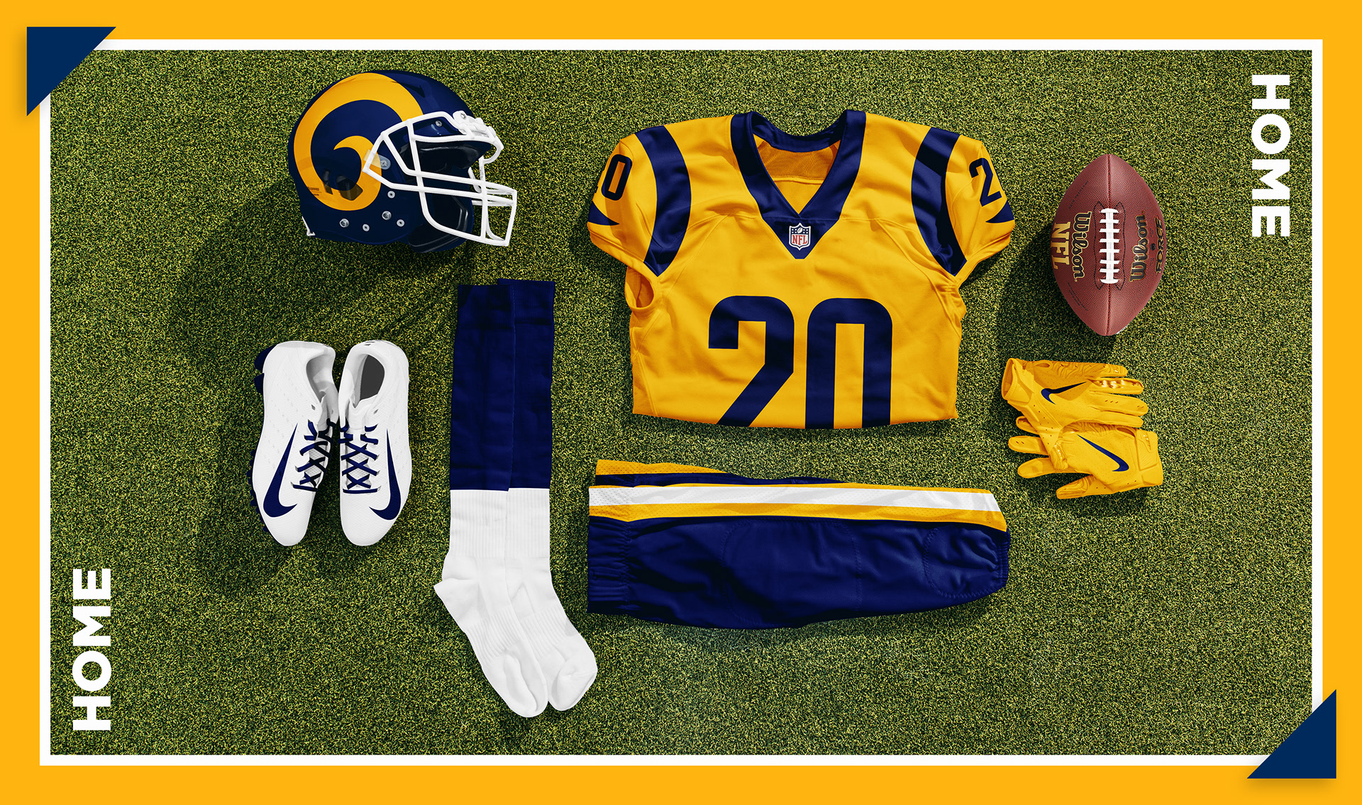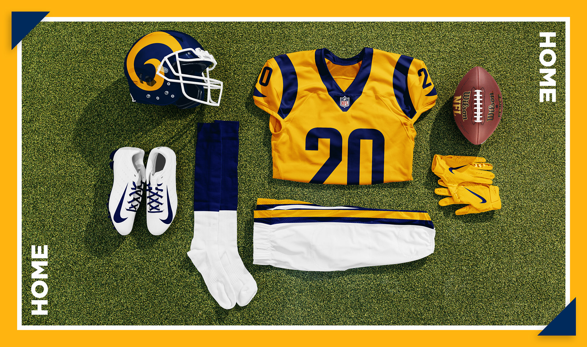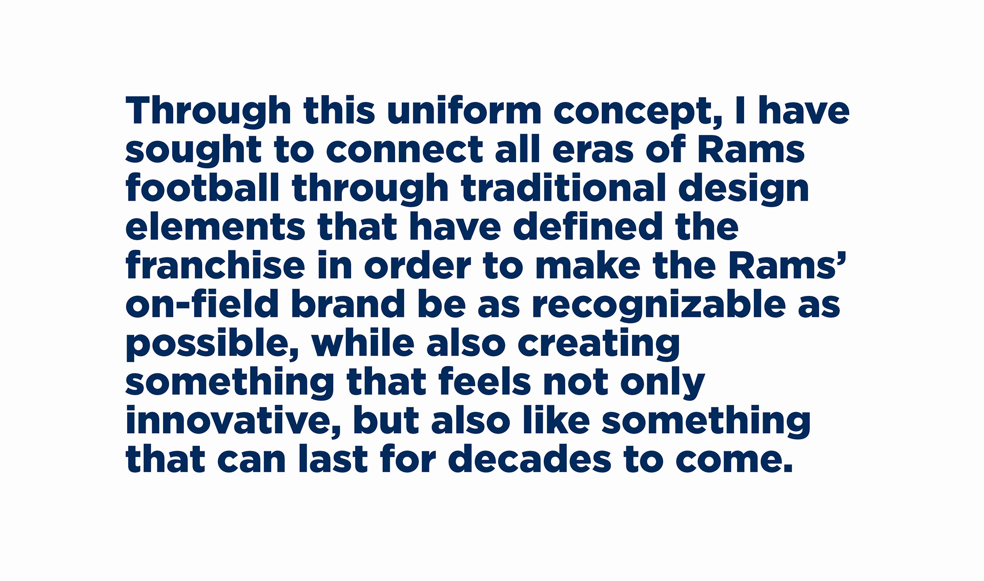 Uniform redesign of the NFL's Los Angeles Rams. Personal project. Uniform mockup template and video game mockup template by Webpixum.